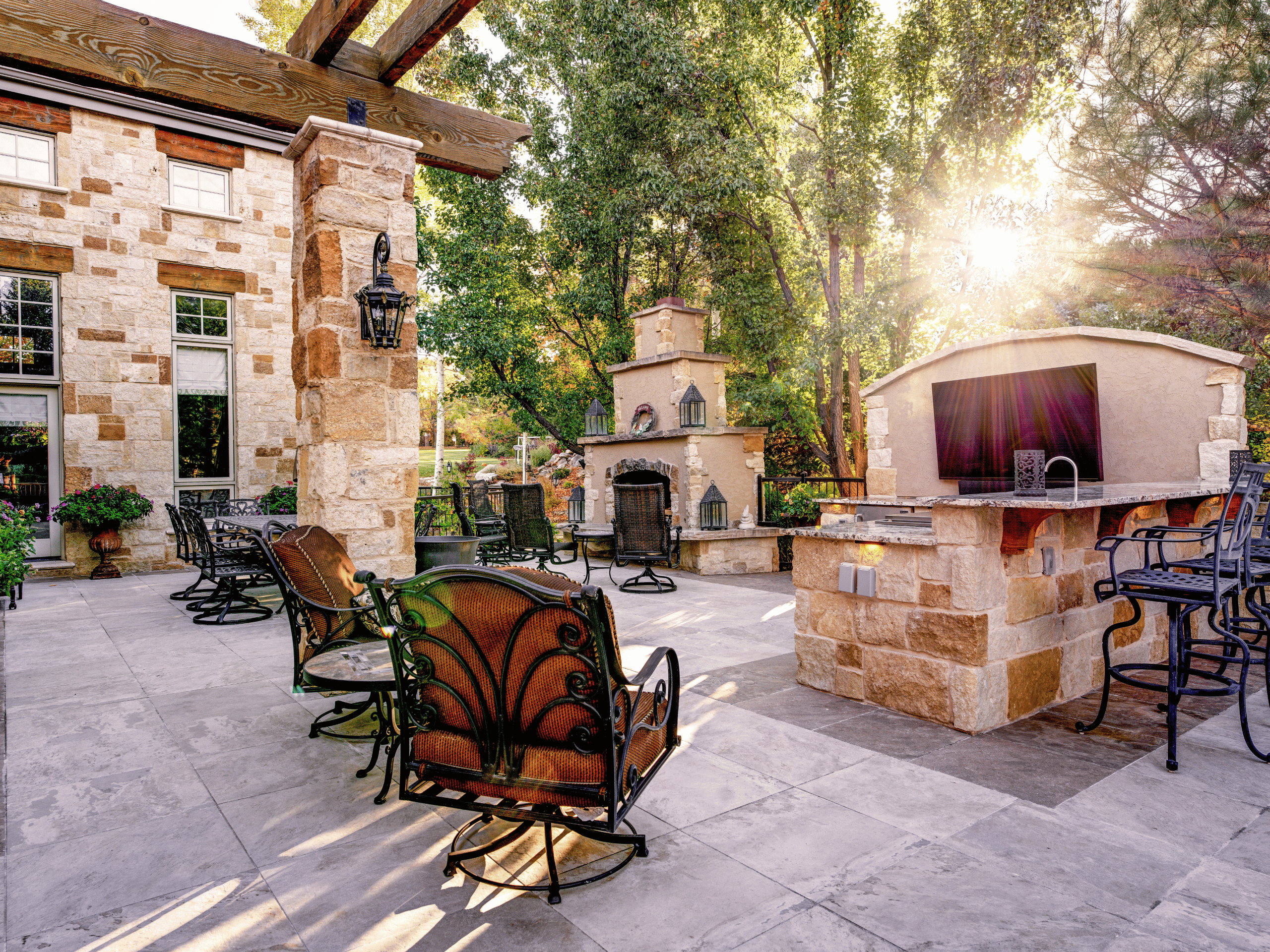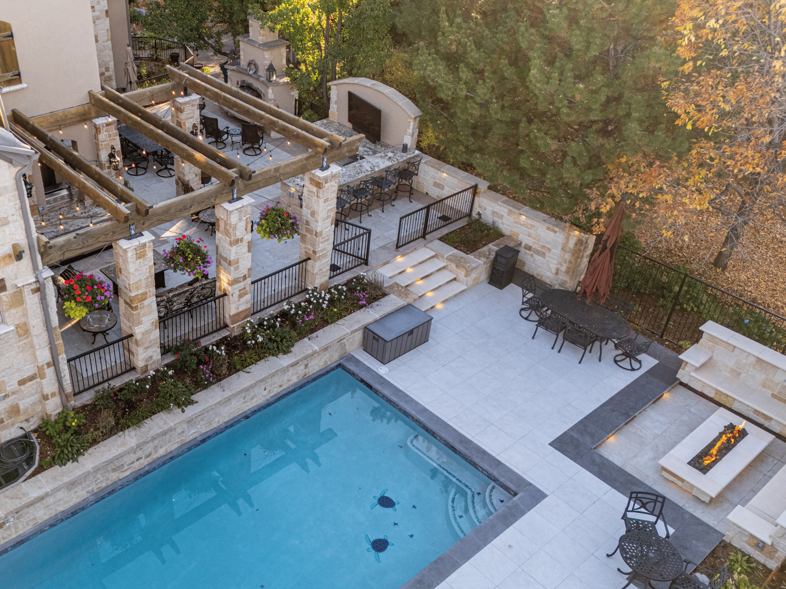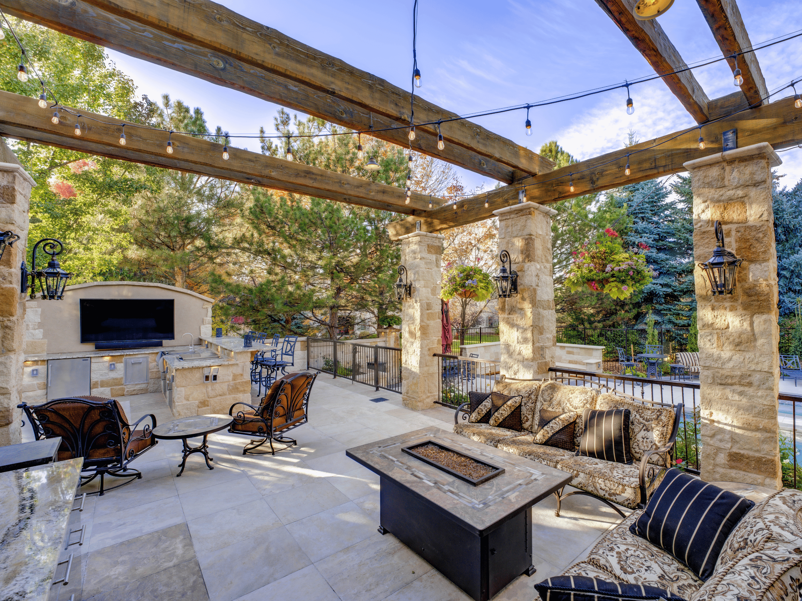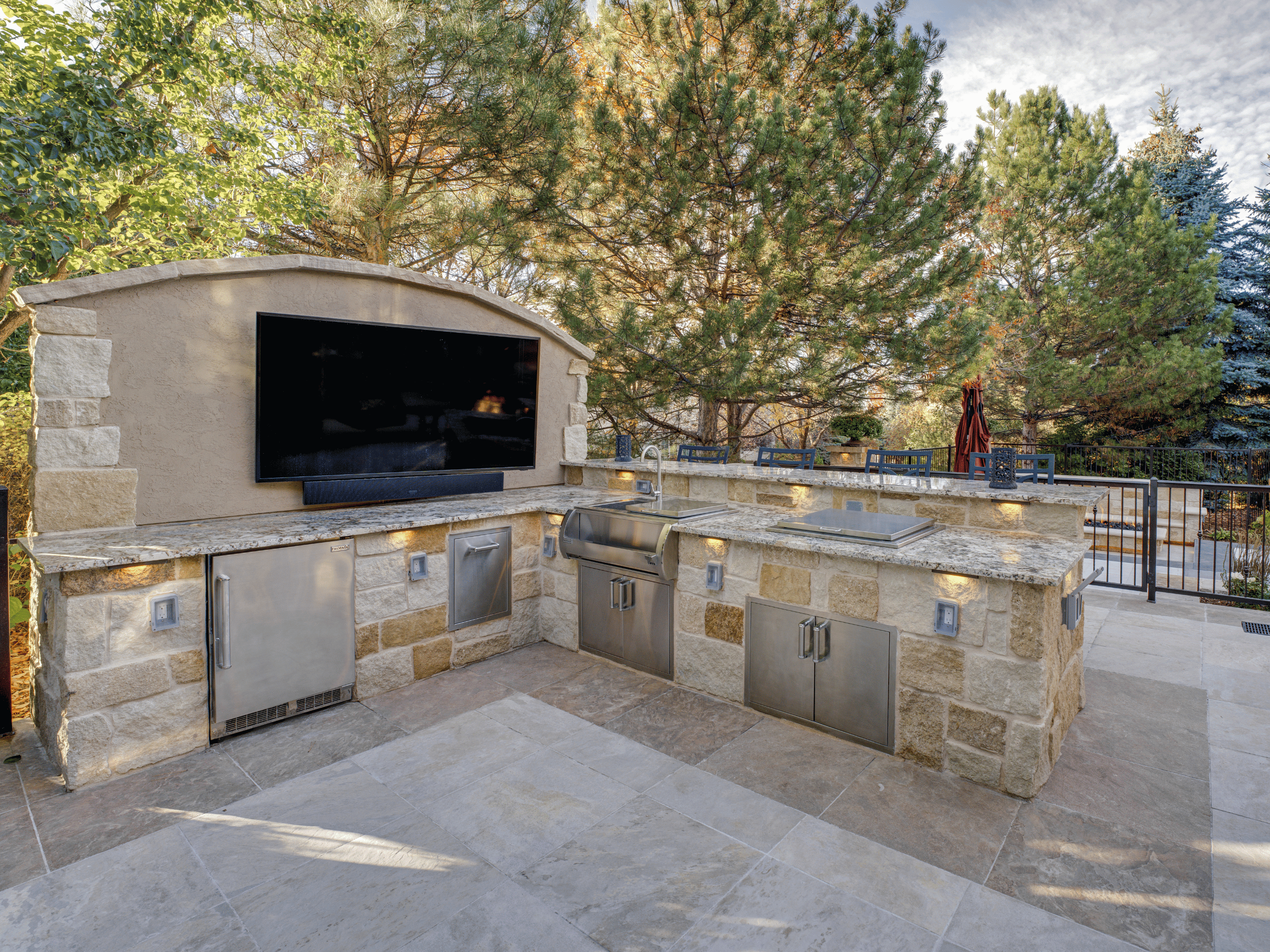 This custom outdoor living space was designed to give homeowners everything they need to relax, entertain, and enjoy Colorado’s beautiful seasons — all without leaving home.